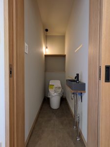 階段下のトイレ空間もこもり部屋のようなお洒落な空間に…