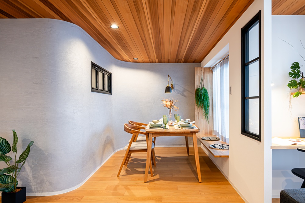 SNSで話題の収納スペースの提案や、こだわりの洗面化粧台、デニムの端材をアップサイクルした壁材、牡蠣殻から抽出した原料を使用したS-491(瀬戸漆喰)など、見どころがたくさん!