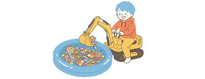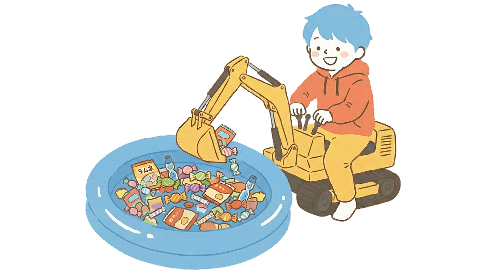 お子さまに大人気!ショベルカーでお菓子すくい