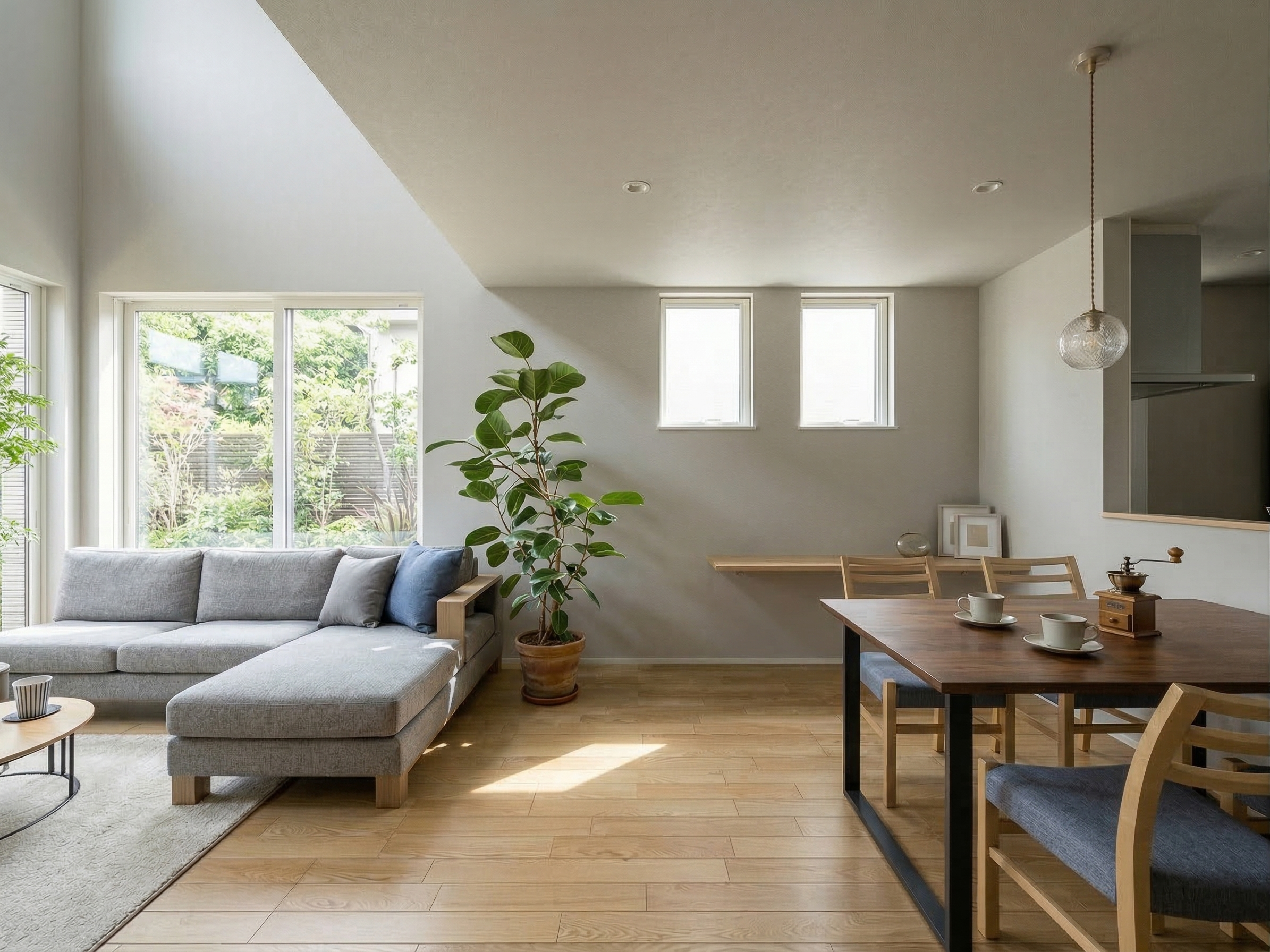 建築地はいわゆる「狭小地」。限られた敷地と予算の中で、無駄をなくし、家族みんなの豊かな暮らしを叶えた一軒です。