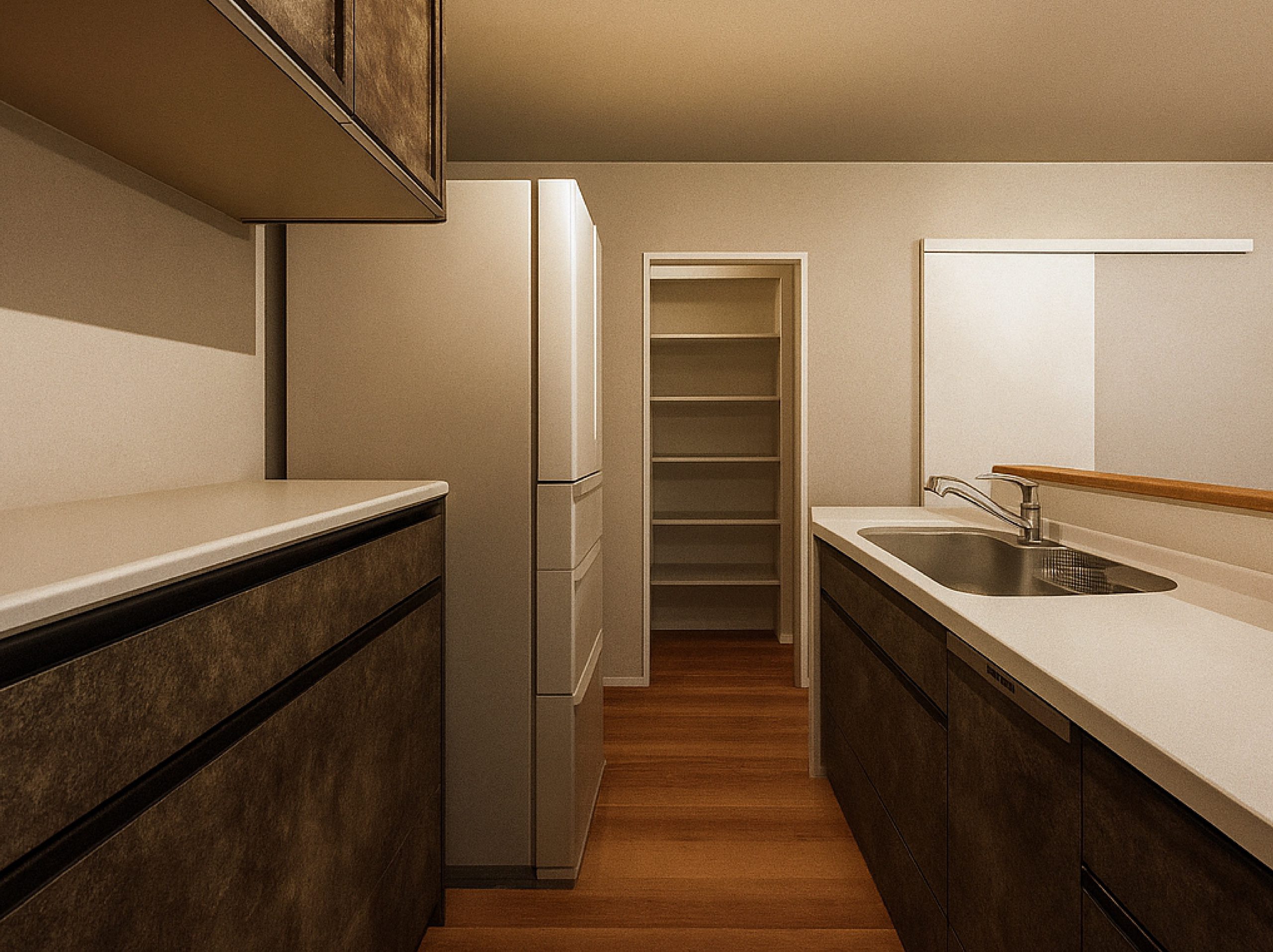 買い物から帰ってきたらパントリーにストック品を収納し、向かいのキッチンへ移動して夕食の準備をスタート。
