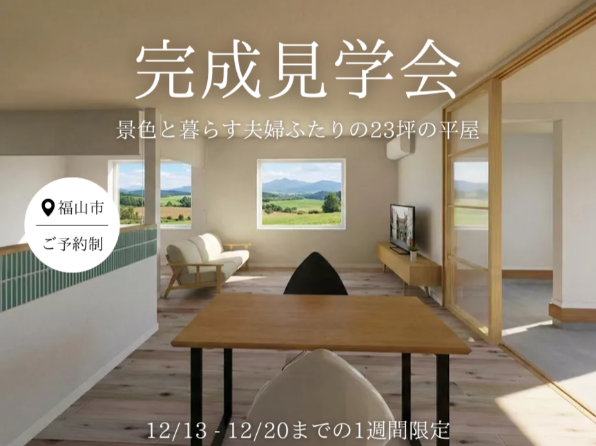 【12/13~20】完成見学会「景色と暮らす夫婦ふたりの23坪の平屋」in 福山市
