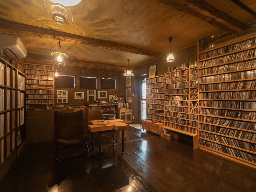 長年収集されたレコードやCDに囲まれて過ごす、18畳の広大な趣味室がこの家の主役です。