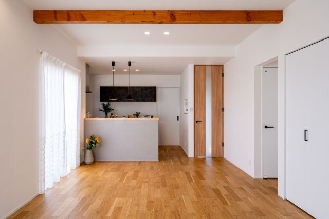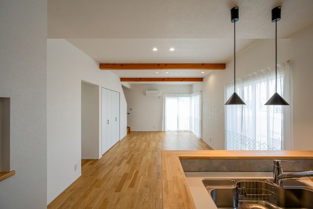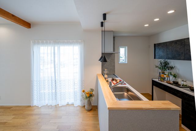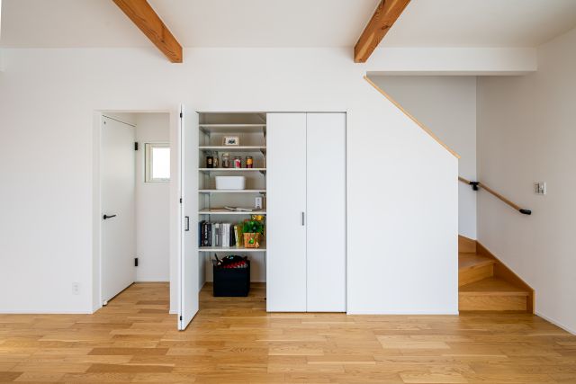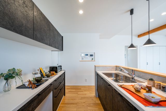 1階にある3.5帖の "ファミリークローク" から始まる家事導線が、家族との距離を近づけ心にゆとりを生む。それが "Kajitan Style"。