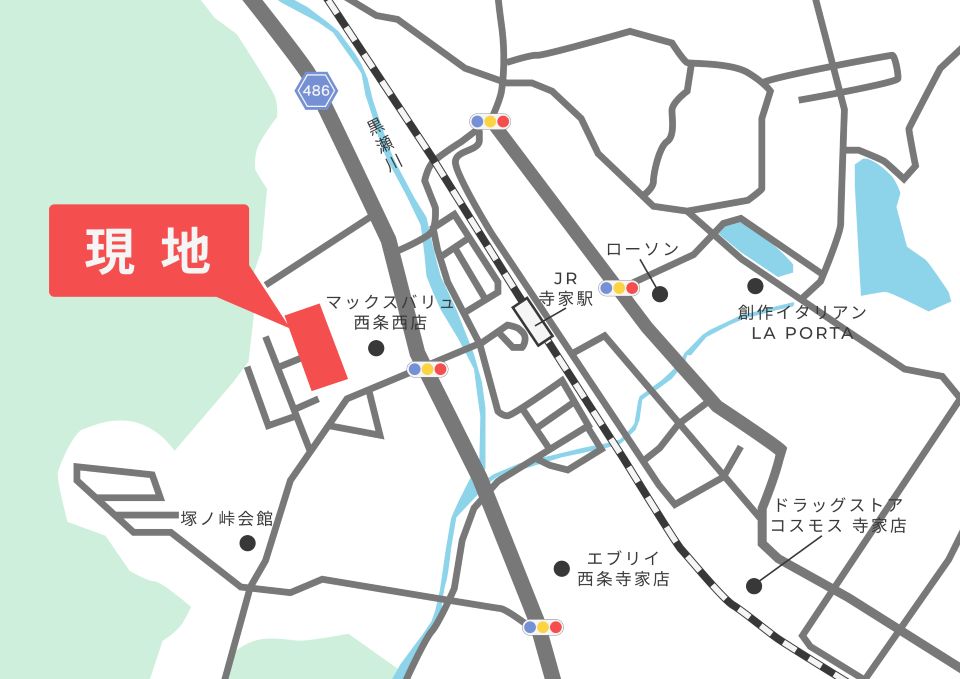 JR山陽本線 寺家駅まで徒歩約7分 (約550m) 広島駅まで最速で約35分。広島方面の通勤・通学、カープ観戦にも便利♪