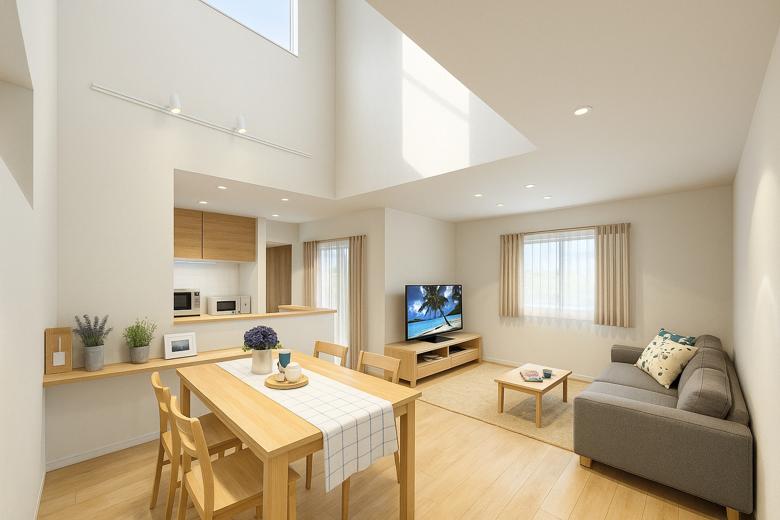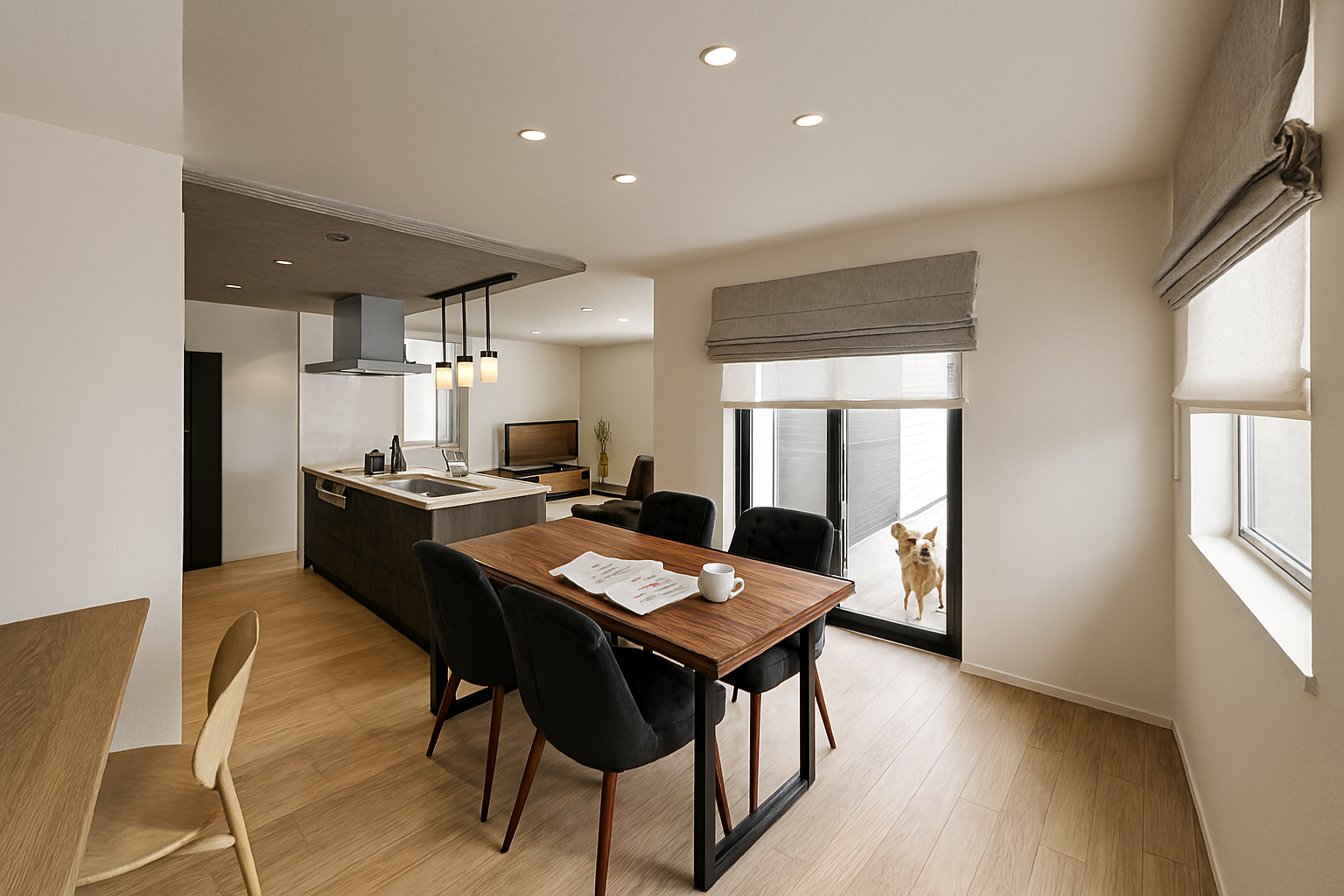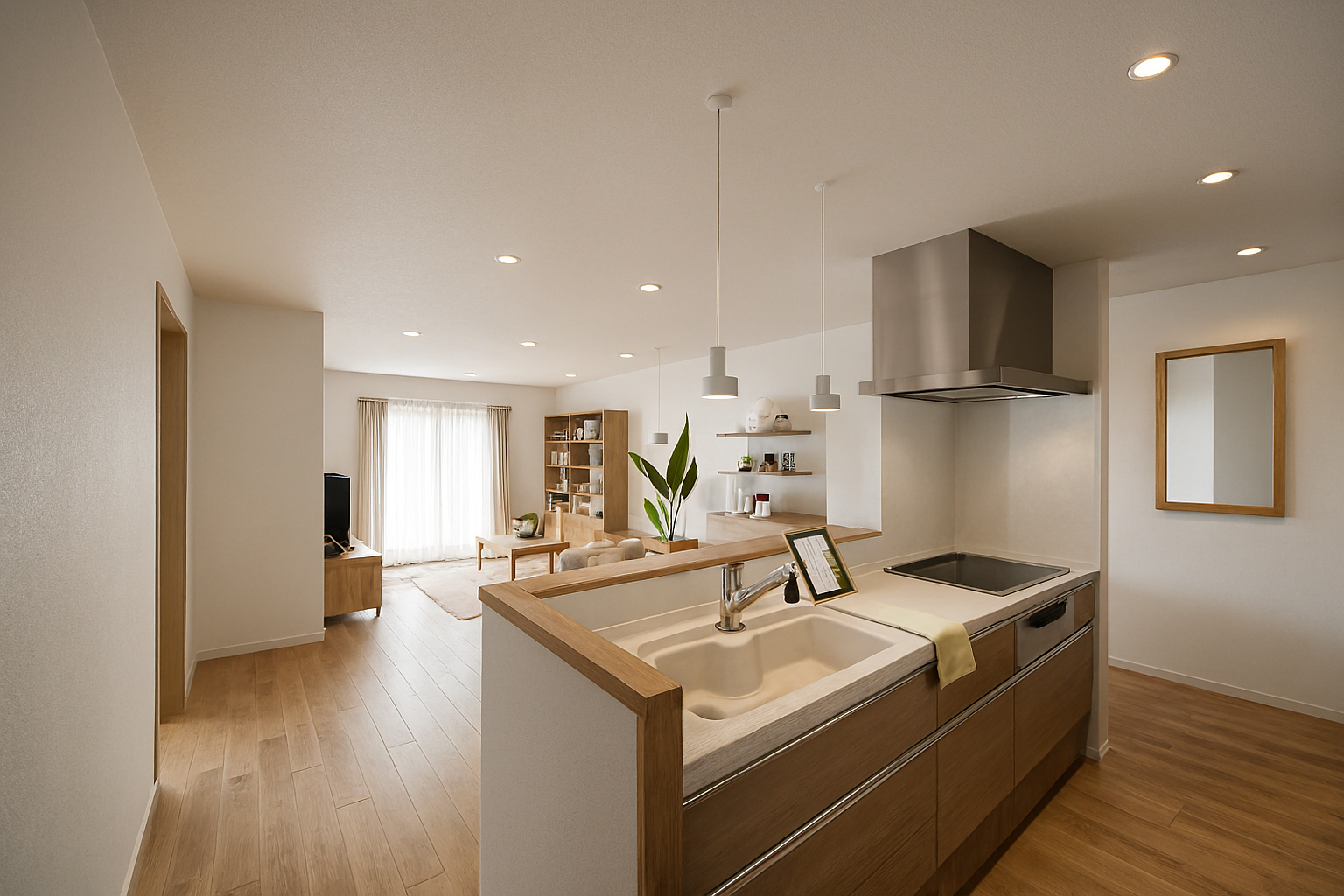 1階にある3.5帖の "ファミリークローク" から始まる家事導線が、家族との距離を近づけ心にゆとりを生む。それが "Kajitan Style"。