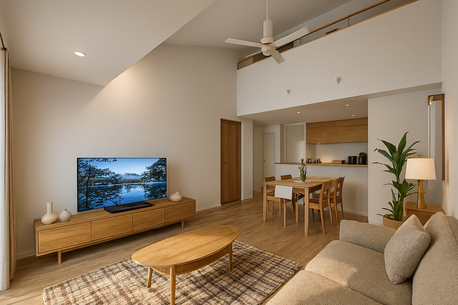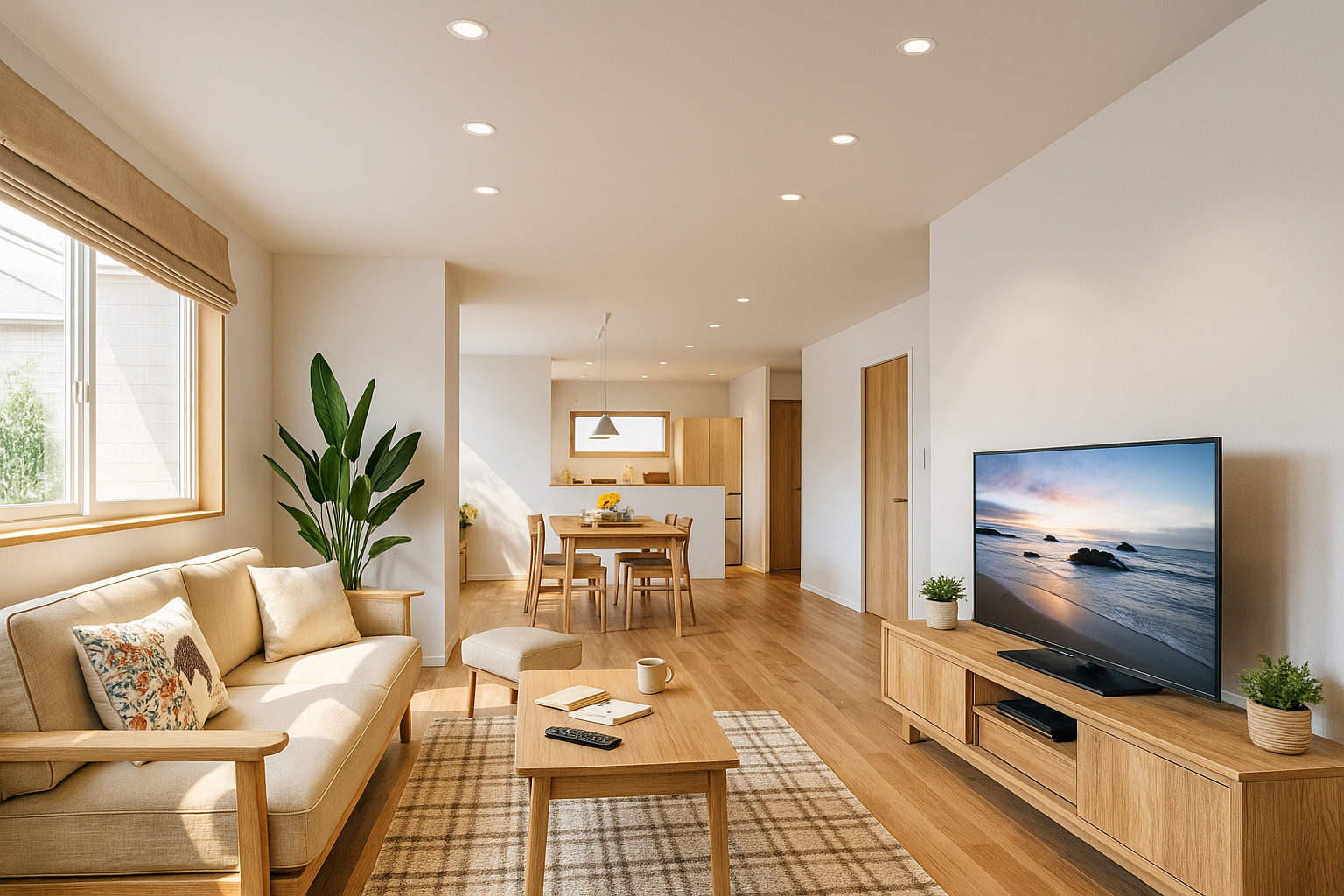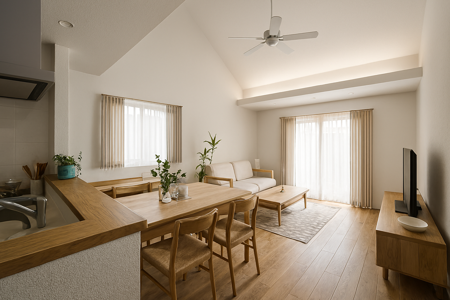 1階にある3.5帖の "ファミリークローク" から始まる家事導線が、家族との距離を近づけ心にゆとりを生む。それが "Kajitan Style"。
