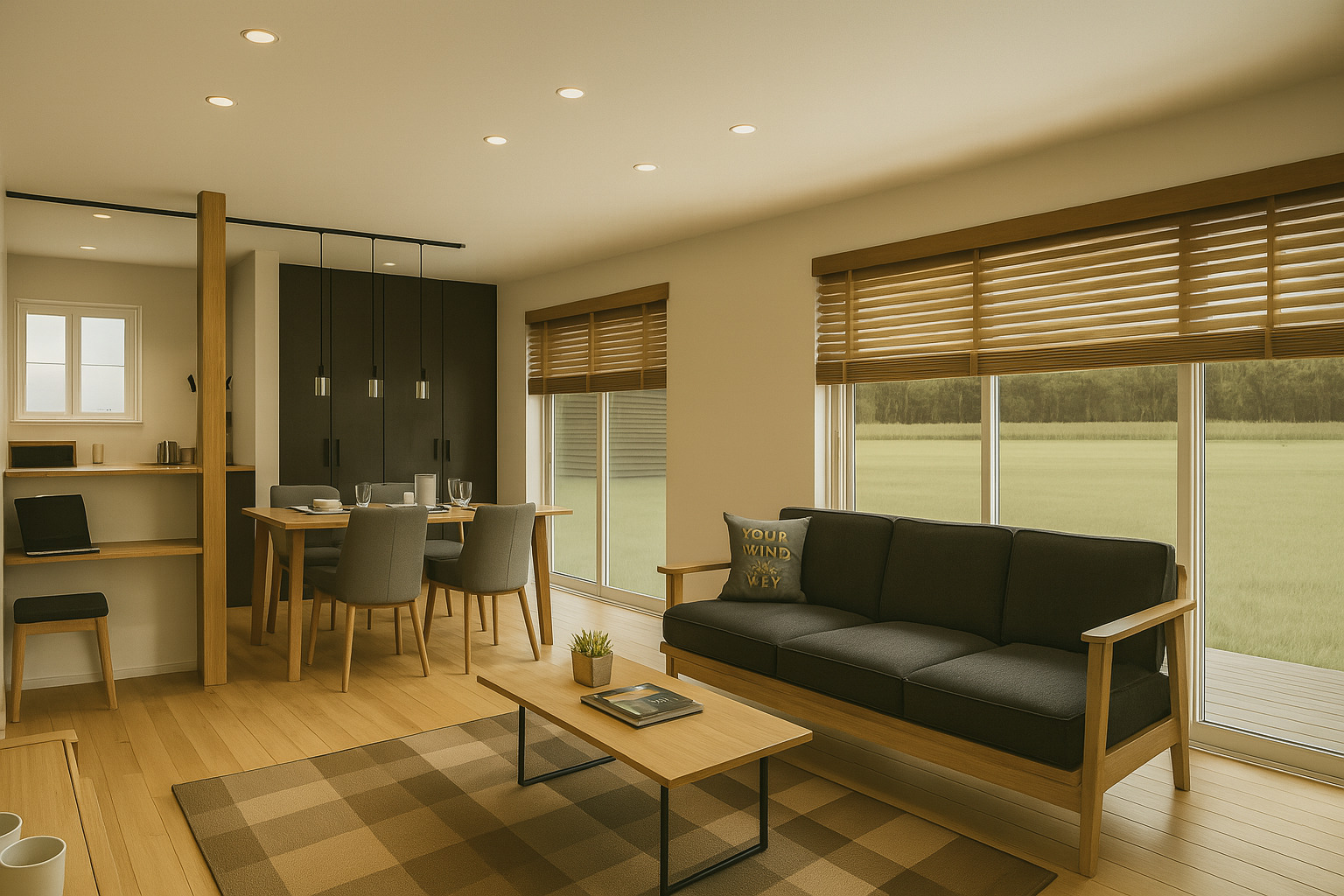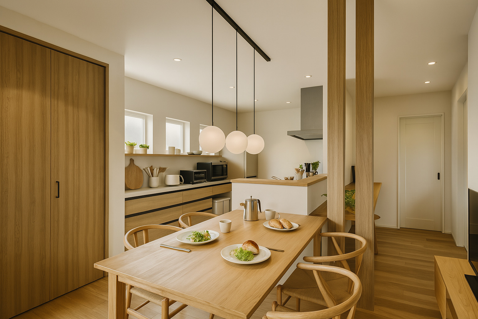 1階にある3.5帖の "ファミリークローク" から始まる家事導線が、家族との距離を近づけ心にゆとりを生む。それが "Kajitan Style"。