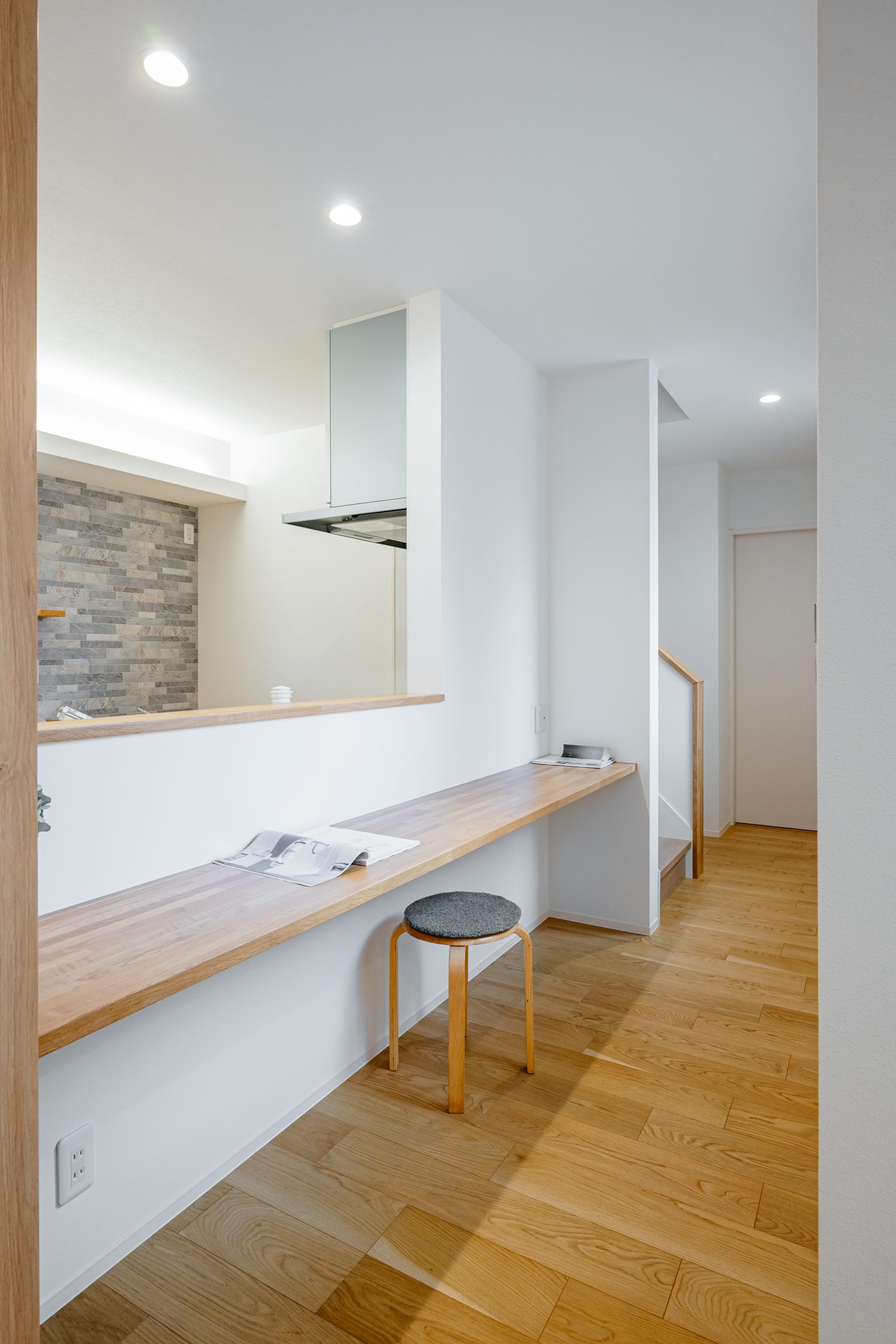 キッチンの対面には、お子様のお絵描きなどの遊びや宿題スペースとしても使用できるカウンターを設置。食事の準備をしながら見守ることができるため、忙しい毎日でも家族のコミュニケーションを深めていただけます。