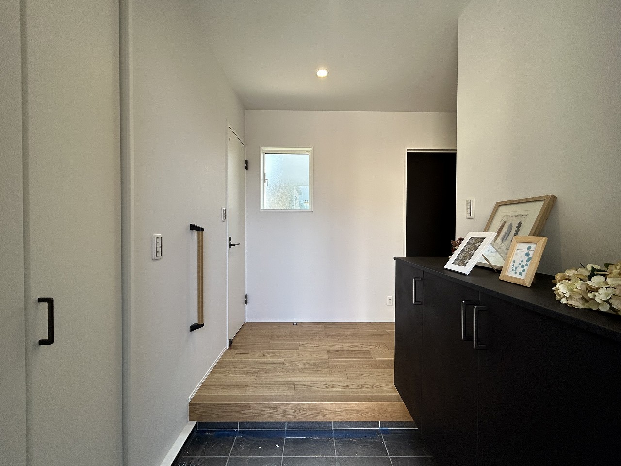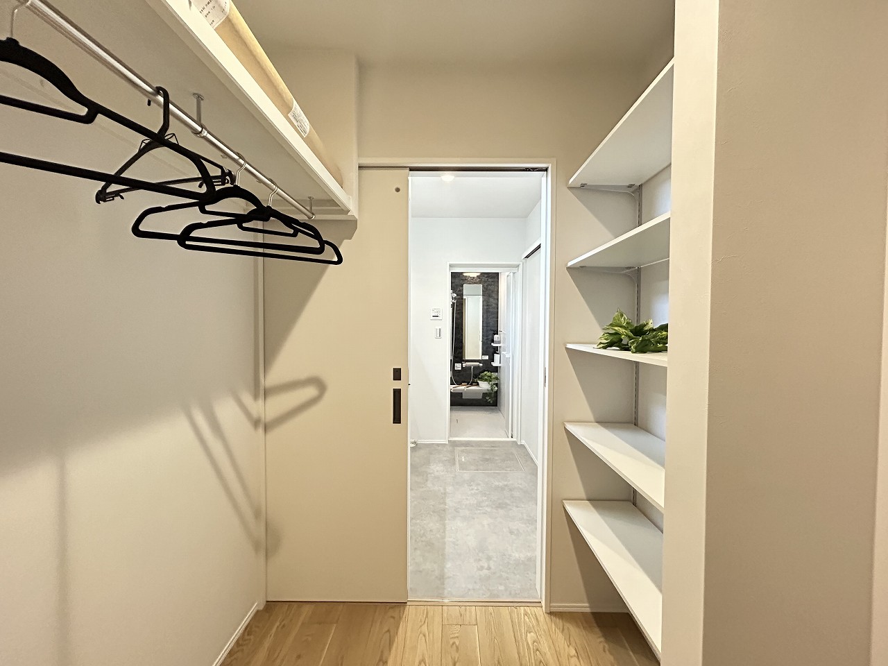 玄関からリビング・クローク・洗面へとつながる回遊動線で、帰宅後の流れがスムーズ。玄関ホールには窓を設け、明るく爽やかな空間を実現しました。主寝室にはテレワークに使えるカウンターと広いバルコニーを備え、暮らしの幅が広がります。