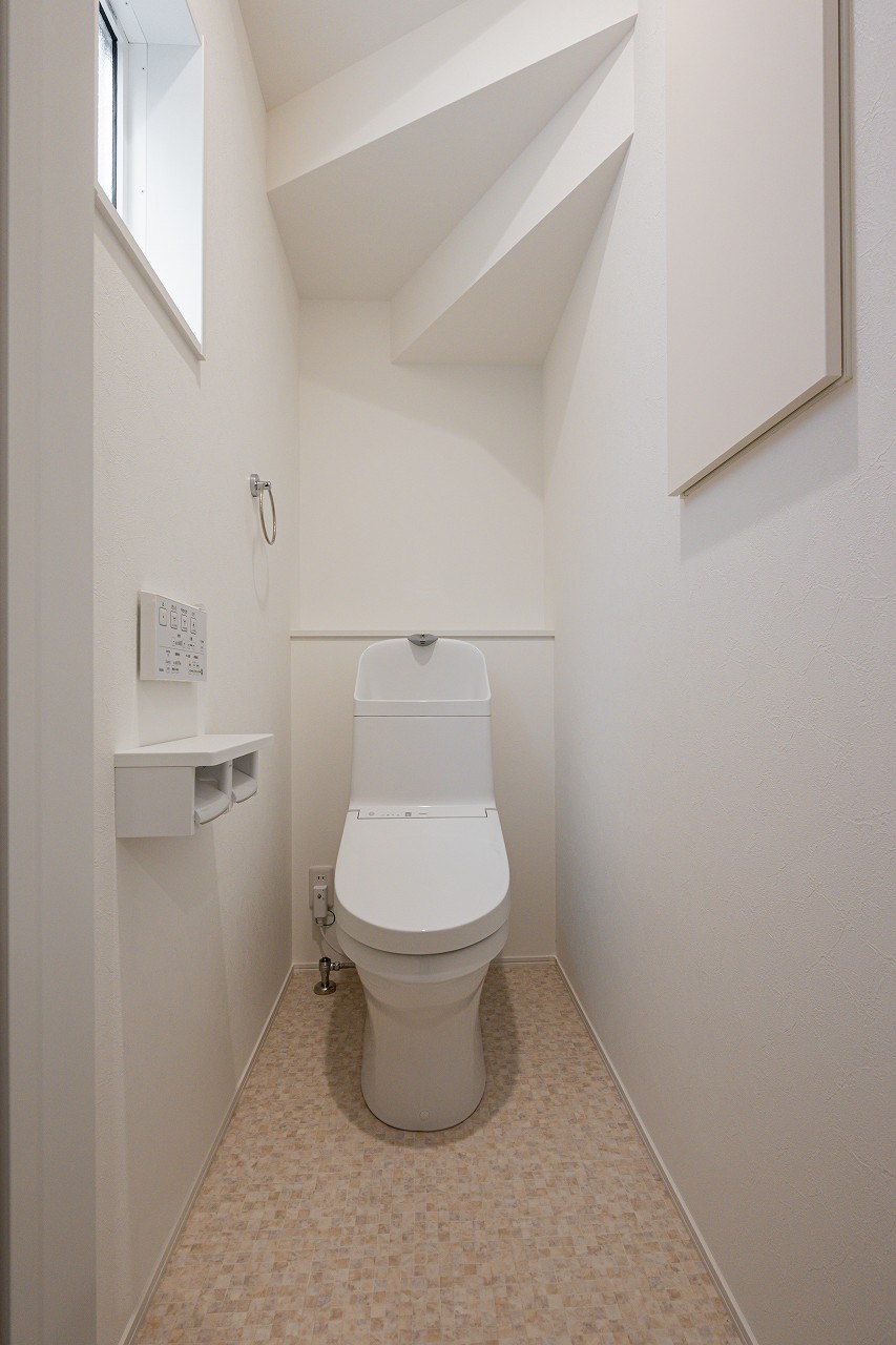 1階のトイレは、プライベート性を高めるため、廊下の奥に設けました。