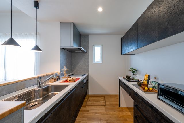 1階にある3.5帖の "ファミリークローク" から始まる家事導線が、家族との距離を近づけ心にゆとりを生む。それが "Kajitan Style"。